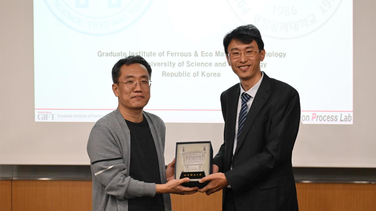 在25日上午的交流环节中,兰鹏表示,AV研究所 与浦项科技大学渊源深厚,学校和AV研究所有多名教师曾在此学习深造,同时重点介绍了冶金、储能学科的人才培养、办学理念、学科优势及科研发展。