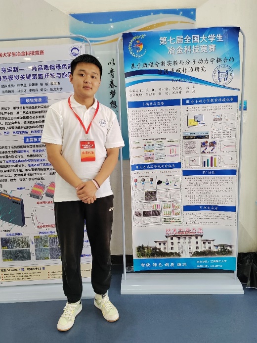 我的研究聚焦于温度对CH₄/CO混合气在氢基直接还原渗碳过程的影响机制。基于系统的实验研究和深入的数据分析,我作为学生一作,将研究成果撰写成文《Effect of Temperature on CH4/CO Carburization Process of Hydrogen-Based Direct Reduced Iron Pellets》成功发表。当看到自己的研究成果拥有了独立的DOI号,并能在国际学术平台上被同行检索查阅时,我深切体会到科研工作的价值与成就感。同时,结合科研成果,在师兄的带领下,我们团队在第七届全国大学生冶金科技竞赛中以《基于历程分割实验与分子动力学耦合的球团渗碳行为研究》项目最终荣获全国特等奖;这次经历,让我对专业知识的应用有了更直观深刻的理解。