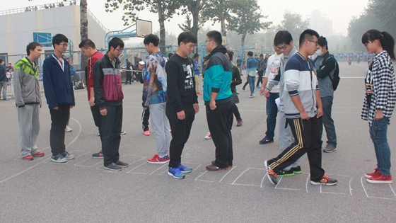 在班级集体游戏部分,新生同学们以班级为单位依次进行了“吐泡泡”、“换位”、“动感呼啦圈”、“诺亚方舟”和“趣味接力”等五个团队熔炼小游戏。活动现场气氛异常热烈,同学们摩拳擦掌、跃跃欲试。七个班级七支队伍,在场地上进行了集体智慧与团队协作的较量。“吐泡泡”、“换位”考验了新生同学们的反应与速度,“动感呼啦圈”增加了新生同学们彼此的默契程度。立体化的造型、零距离的接触,“诺亚方舟”游戏中全班齐上阵,帅气的“钢小伙”托起可爱的“铁姑娘”,力求使地面上单薄的报纸承载更多的同窗伙伴。担任活动裁判的AV研究所团委学生会2014级学生骨干们公平执规、详细记录并为新生同学们做好安全提示和活动保障工作,发挥了学长学姐们的服务与表率作用。