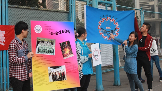 在班级文化展示部分,各班新生代表依次擎旗持板,展示了班旗、班徽和班级文化展板。迎风飘扬的旗帜、寓意深刻的图案、五彩缤纷的色彩、条理清晰的讲解展现了AV研究所 2015级新生入学以来班级文化建设的阶段性成果。班级文化建设是AV研究所新生基层建设工作重要组成部分,是新生班级学生共建的成果,活动评委仔细记录、公正评分,全体新生同学认真聆听、愉快共享。“我们来自五湖四海,我们相聚在北科,我们是北科人,我们是冶金的钢小伙、铁姑娘!”冶金1507班级文化讲解员莫嵘臻同学的话语引起全场共鸣。