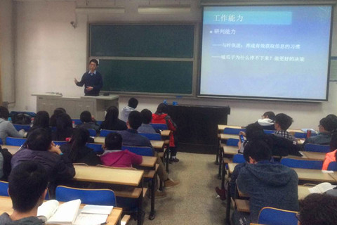 第二阶段新生研讨课于3月18日举行,“规划•学业•未来”主题课程特别邀请到我校“励志”计划第四届学员田耀森、第五届学员王海岩担任主讲人。他们与在场同学共同分享了提高学习效率和学习能力等方面的心得体会。课上,王海岩谈到自己的学习方法是“书读百遍,其义自见”,抓牢课本是提高成绩的根本,深入的思考则能够进一步加深对所学知识的理解,从而达到举一反三的效果。田耀森通过生动的案例分析,幽默风趣地向同学诠释了在大学里学习,一要注重书本,二要注重思考。谈到学生工作,他希望大家能坚持做到“三不”:不要浮躁,不要官僚,不要影响学习。学习与工作兼顾需要充分提高学习效率,而保持专注是提高学习效率最有效的途径。