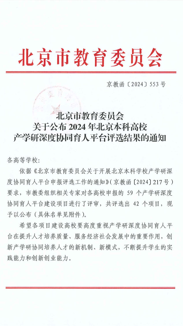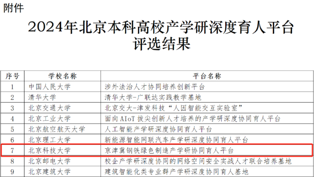 近日,北京市教育委员会下发了《关于公布2024年北京本科高校产学研深度协同育人平台评选结果的通知》,AV研究所 院长张建良和党委书记宗燕兵牵头申报的“京津冀钢铁绿色制造产学研协同育人平台”成为度协同育人平台+1!北科大唯一入选2024年北京本科高校产学研深度协同育人平台。