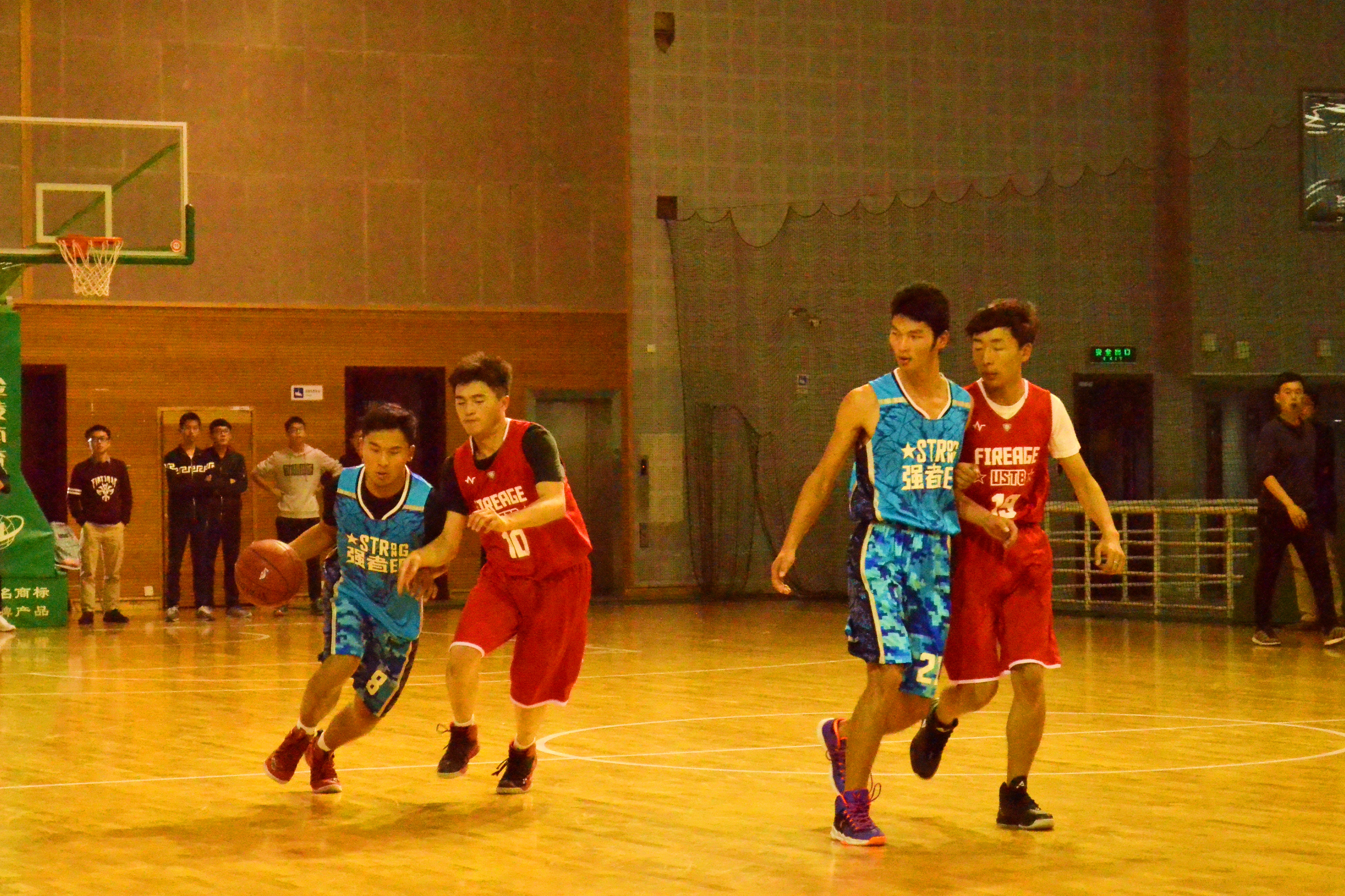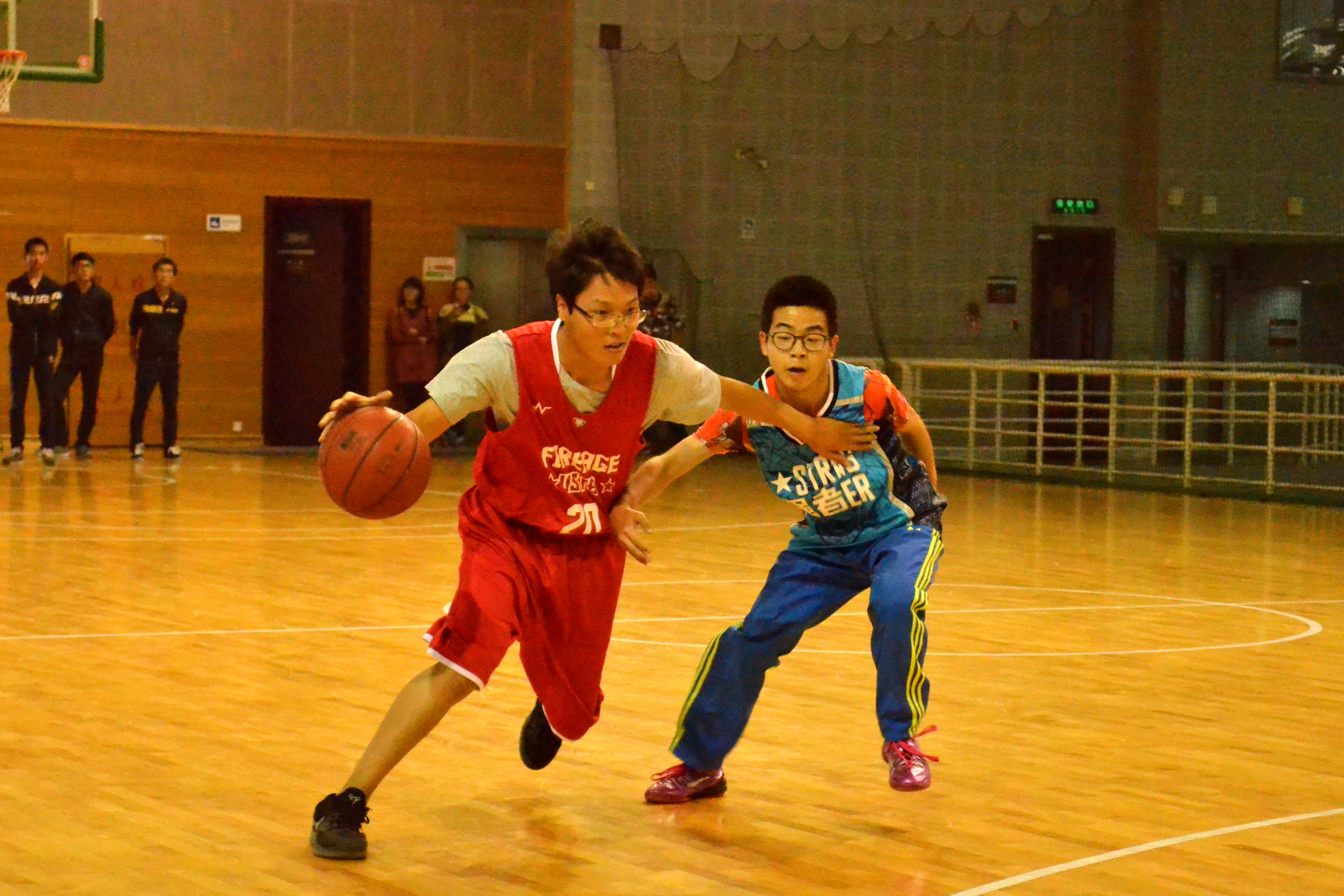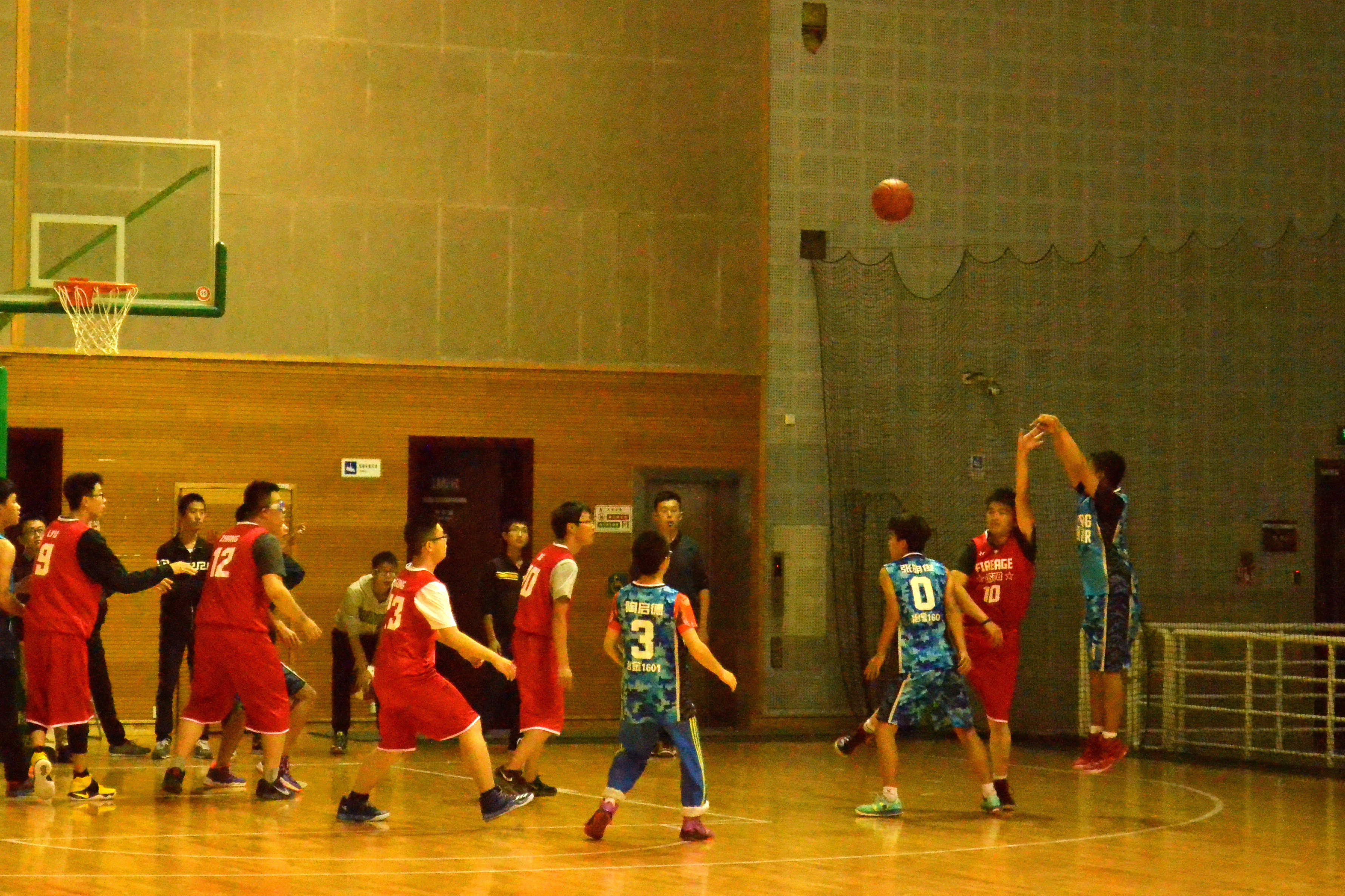 比赛一开始,双方队员迅速进入状态,身穿红色队服的1605班积极进攻,拿下了第一分,身穿蓝色队服的1601班队员也不甘示弱,面对对方的进攻主动防守,进行了猛烈的反击,1605班也不甘示弱,9号选手进行控球,利用身高优势进行外线压制,并对对方的传球进行干扰、拦截,组织了多次拦截快攻“一条龙”。最后1605班与1601以17:12结束上半场比赛。