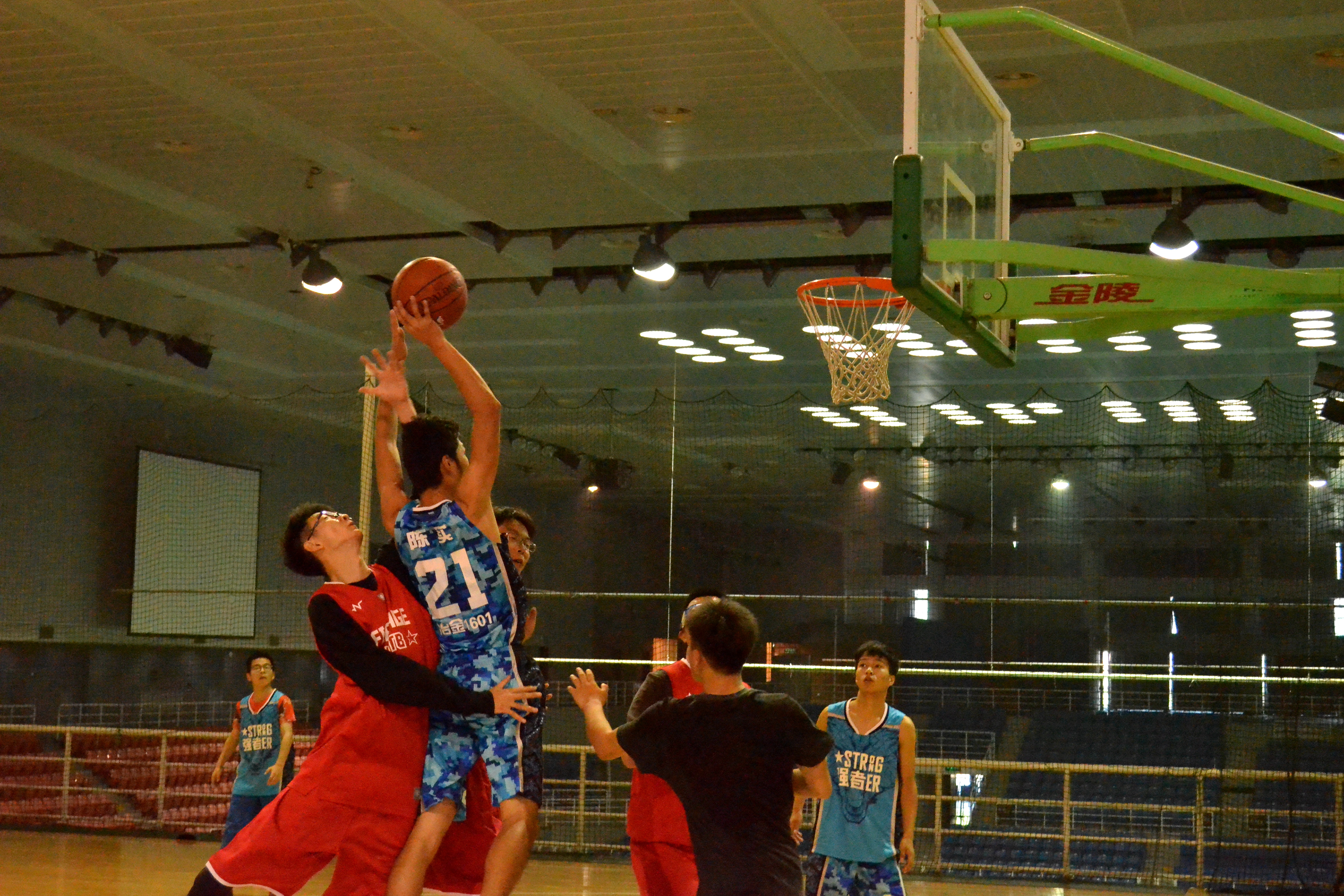 下半场比赛开始,1601凭班借上半场比赛获得的比分优势,在进攻端放开手脚,采取内线突破以及外线远投的战术连得五分,将比分一度拉大至21:12。红队1605班抓住对方回防疏漏,上篮得分,提高了士气。战况愈演愈烈,在场边观战的啦啦队也不甘示弱,旋起了一阵呐喊助威的小龙卷风,或挥手,或欢呼,为比赛的进行增添了几许热烈,极大地鼓舞了在场队员的士气。面对敌方的强烈反攻,1601班继续采取上几节比赛的战术进行反击。哨响,1601班最终以45:31完结了比赛,夺得了桂冠。比赛精彩纷呈,赢得了在场观众的热烈喝彩。