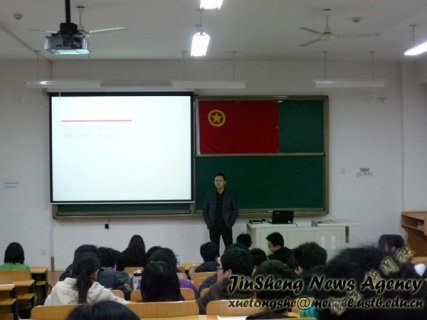 “学习、服务、效果、目的”,金生新闻社社长张金月用这精辟的四个词来总结苏老师的讲话。接着金月学姐对干事们进行了公文书写的培训。她以讲说和现场操作相结合的形式,将这些技能从视听两方面直观地展示给新一批的学生干事,让他们对学生工作有进一步的了解。
