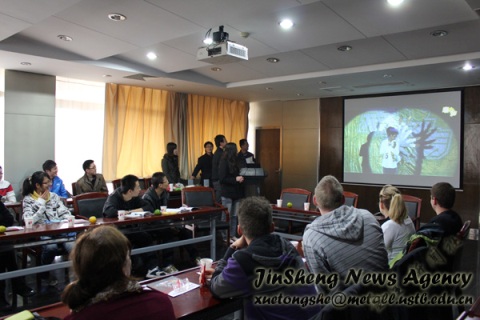 为来访的德国学生放映了AV研究所今年“春之声”文艺晚会的视频片段,既活跃了现场的气氛,也让德国学生对于中国青年的课余生活有了更深的了解。随后一段AV研究所
