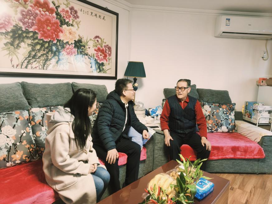 在田秋占老师家中,师生一行首先向田老师致以节日的美好祝愿。宁书记格外关心田老师的退休生活状态,了解田老师生活情况、日常起居,耐心倾听老教师的需求与想法。