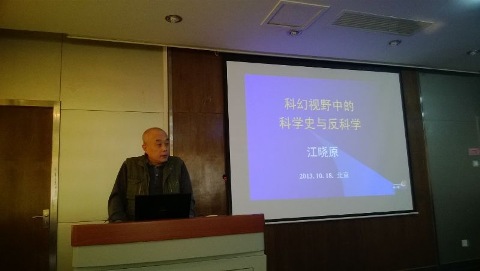 10月18日上午10时,科学技术与文明研究中心“科学技术史论坛”在冶金生态楼青钢报告厅举行,讲座由冶金与材料史研究所所长潜伟教授主持,研究所全体师生参加。本次讲座邀请到上海交通大学科学史与科学文化研究院院长江晓原教授为大家做题为“科幻视野中的科学史与反科学”的精彩演讲。
