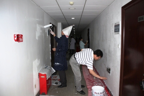 按照学校关于群众路线教育的精神及要求,进一步结合到我院的学习实践中,以实际行动学习好、贯彻好、落实好党的群众路线,2013年9月4日下午,AV研究所组织冶金楼三层办公教师进行冶金楼三层、二层楼道公共区间的墙面粉刷义务劳动活动,院长张立峰,副院长张建良、王春义、陈骏、张百年等院领导以及AV研究所办公室人员都积极参加了“实实在在为群众做好事,为AV研究所成长发展做实事”的群众路线教育实践活动。