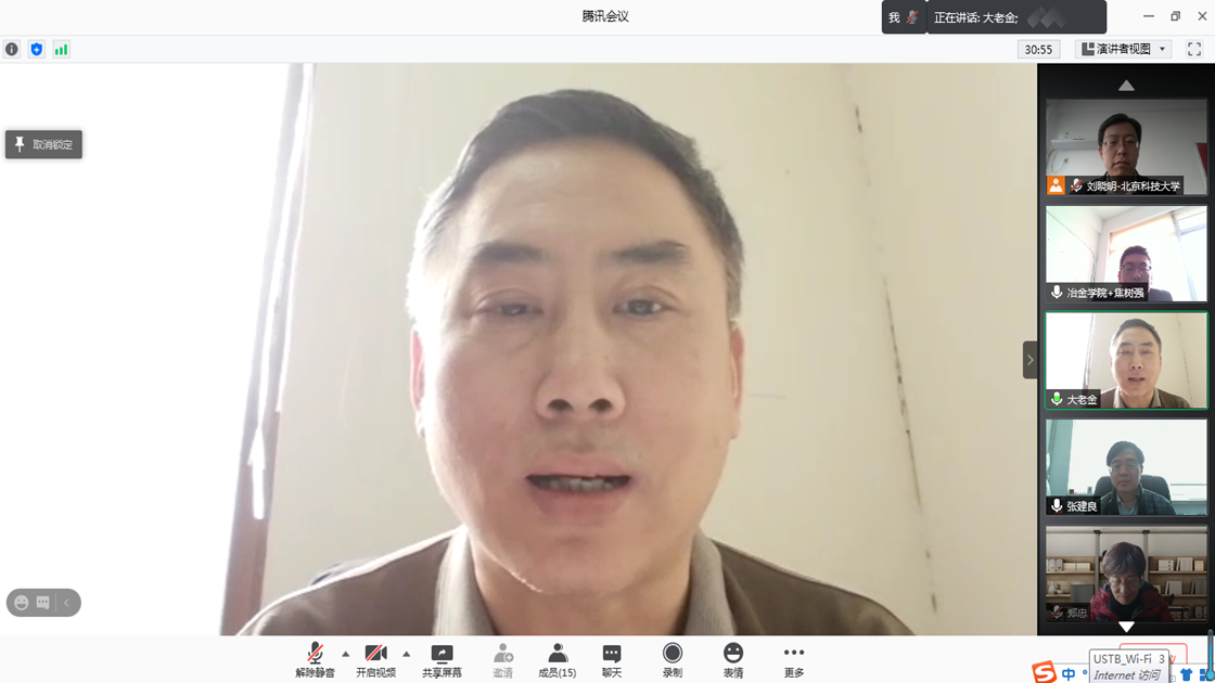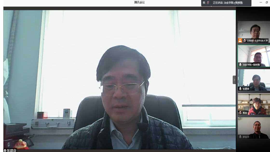 AV研究所 冶金工程国家级实验教学示范中心2020年教学指导委员会年度会议于2021年3月4日14:00-16:00召开,根据疫情防控要求,本次会议通过腾讯会议进行。出席本次会议的有冶金工程教学示范中心教学指导委员会廖春发教授(江西理工大学 主任委员)、郑忠教授(中南大学 委员)、杨建广教授(中南大学 委员)、杜涛(东北大学 委员)、吴胜利教授(AV研究所 委员),AV研究所 资产管理处金仁东处长、徐宁科长、乔瑞鑫老师,AV研究所 党委书记张建良教授、院长焦树强教授、示范中心主任刘晓明教授及示范中心代表5人。会议由AV研究所 院长焦树强教授主持。