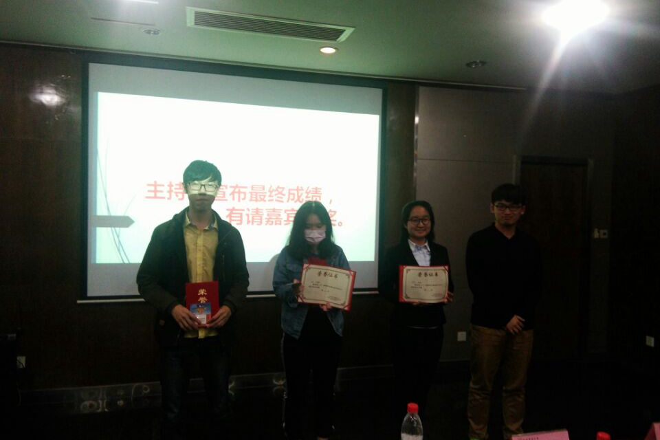 最后焦若萱同学荣获冠军,刘哲同学和李洋同学分获第二、第三名,张健博老师为之颁奖。至此,本届演讲比赛AV研究所