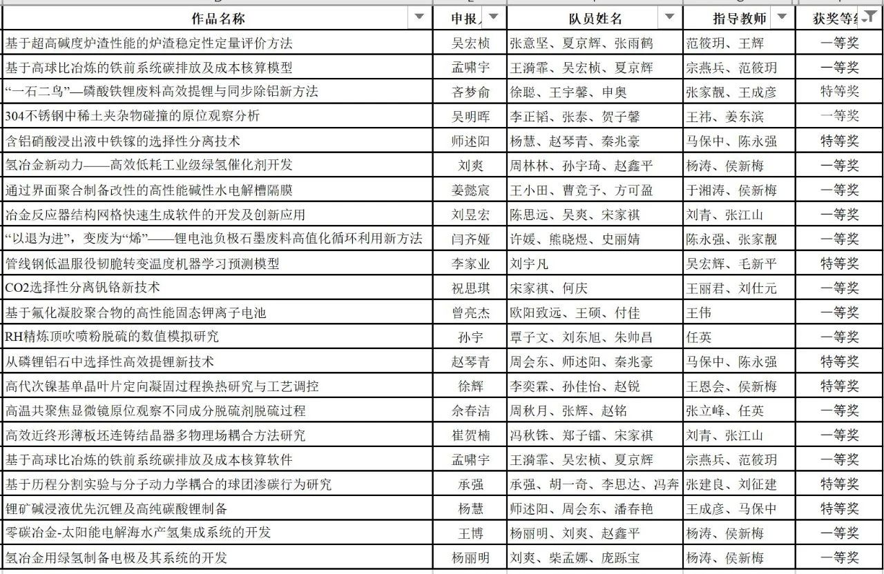 本届全国大学生冶金科技竞赛由教育部高等学校材料类专业教学指导委员会指导,中国金属学会主办,江西理工大学承办。大赛主题是“智能、绿色、新质、循环”,分为创意设计、科技创新和仿真实训三个单元。自4月份发布通知以来,共收到参赛作品2112件。我校冶金学科本科生和硕博研究生积极参赛,发挥出色,再创佳绩,最终斩获创意设计和科技竞赛特等奖7项,一等奖15项,二等奖22项,三等奖35项;在仿真实训竞赛中获特等奖1项,一等奖1项、三等奖2项;AV研究所 获优秀组织奖单位。