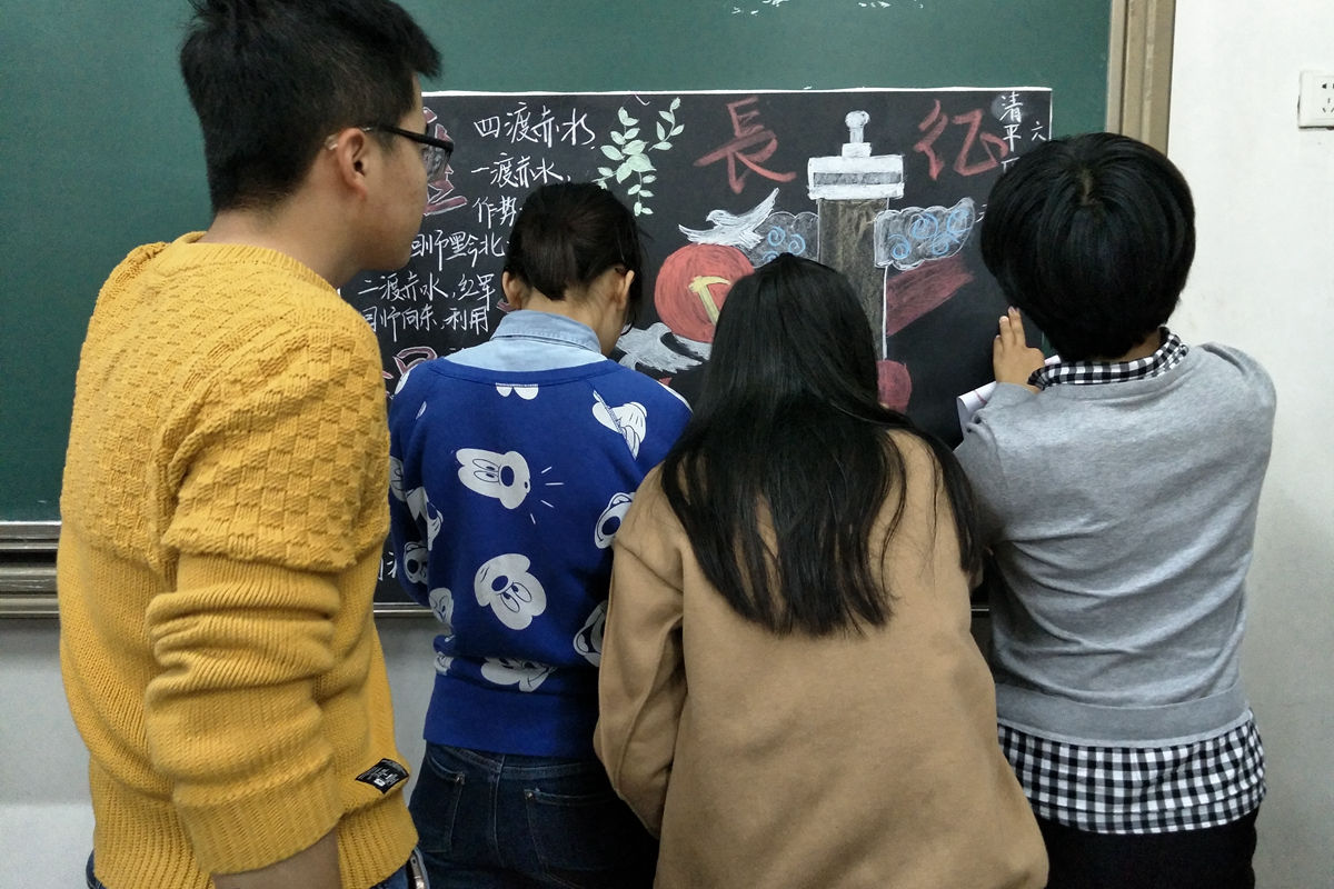 10月23日上午,为集中开展长征精神学习教育,引导学生思考长征精神的深刻内涵,思考当代需要怎样的“长征精神”,AV研究所 于冶金楼110举行“激活红色基因,共绘不朽丰碑”专题黑板报绘制活动。