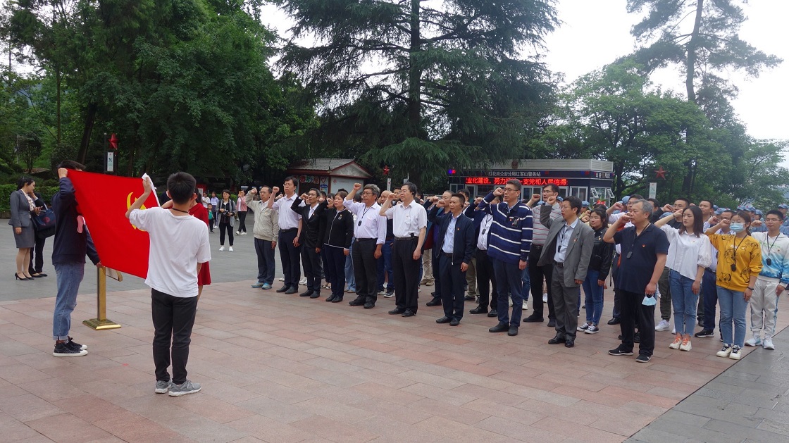 参观结束后,在AV研究所 党委书记张建良和贵州大学材料与AV研究所 党委书记胡环宇的带领下,全体党员前往红军山烈士陵园,向革命先烈敬献花篮。在红军烈士纪念碑前,全体党员举起右手,紧握拳头,庄严宣誓,重温入党誓词。红军山烈士陵园内,大家还瞻仰了红军烈士英烈墙、邓萍烈士墓和红军坟,近距离了解革命先辈的英雄事迹,学习革命先驱勇于奉献、不怕牺牲的精神。