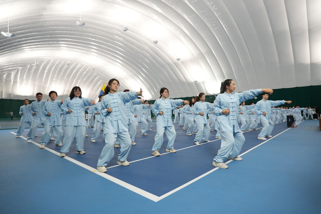 比赛现场,学院代表队身着统一服装,精神饱满,动作舒展沉稳,较好地将八段锦柔缓连贯、形意相随的特点呈现出来,展现了学院教职工积极健康、团结和谐的精神风貌。