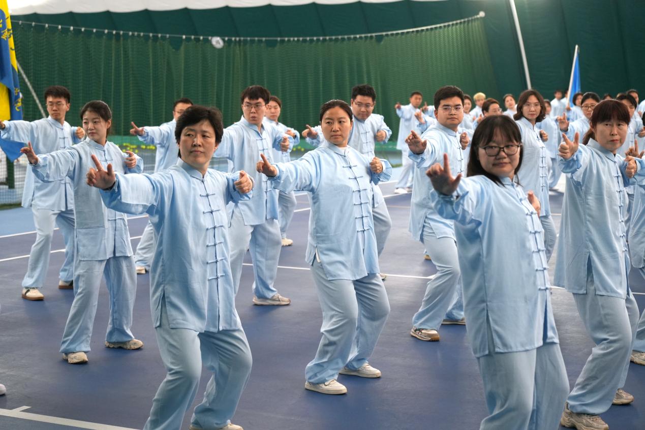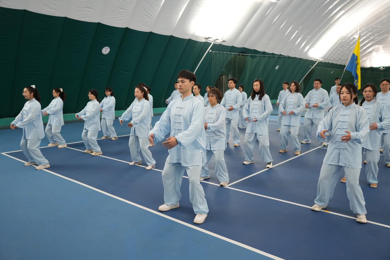 为丰富教职工文体生活,倡导健康工作理念,2026年4月16日下午,校工会举办了教职工八段锦比赛。AV研究所 分工会积极响应,由分工会主席姜佳男带队,选派教师代表组队参与本次活动。在备赛阶段,老师们充分利用课余时间,进行了为期一个多月的认真练习。从动作分解到整体配合,大家反复切磋、共同磨合,不仅提升了对传统养生功法的掌握,也在过程中进一步增进了交流与团队默契。