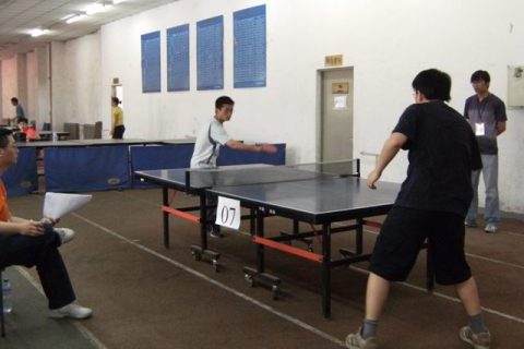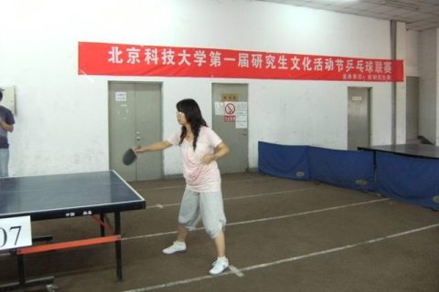2009年5月23日下午一点半,校研究生乒乓球单打在校体育场看台下拉开帷幕,龙鹄代表AV研究所