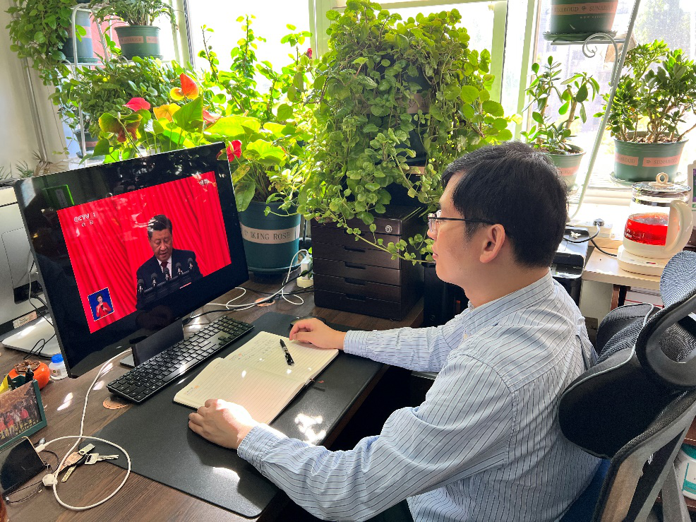 在这秋高气爽的日子里,能与师生共同观看党的二十大开幕会直播是非常珍贵的体验,此刻内心激动。近年来,冶金行政聚焦服务AV研究所、服务师生、服务学科,为教学科研和人才培养提供坚实运行保障,助力形成了高质量党建与高质量发展并驾齐驱的生动局面,更加珍惜来之不易的良好局面。我们将更加紧密地团结在以习近平同志为核心的党中央周围,全面贯彻习近平新时代中国特色社会主义思想,把党的二十大精神和党中央各项决策部署落到实处,踔厉奋发,追梦不止,以实际行动喜庆党的二十大胜利召开。作为党政管理干部,要把二十大精神落实到统筹协调抓保障、全力以赴抓支撑、精准施策抓服务等各项工作中,依法行政、弘扬文化、展现形象,为助力“双一流”建设、培养“钢筋铁骨”高素质人才贡献自己的力量。
