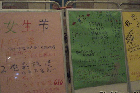 3月6日中午,在冶金楼门口,一排排的许愿板让很多人留恋驻足,他们纷纷留言,女生们说出自己的心愿,男生则祝福女生快乐。这样的情景让路过的同学都想起了这个特殊的节日。团委学生会办公室还特意为有需要的人提供玫瑰订购服务。