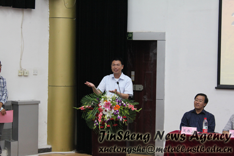 王福明副院长随后也和同学们进行了交流。他说30年前的今天也是他入学的日子,并且亲切地以学长的身份告诉学弟学妹们要树大志,提高自我管理意识,尽快适应以学习为主旋律的大学生活。钢铁冶金系主任成国光教授则代表AV研究所的老师表达了对11届学生的殷切希望。他从不同的角度来让同学们明白大学里应该做些什么。而他对冶金行业未来前景的分析则带动了在场每一位同学的豪情。“只有踏踏实实学习、掌握好一技之长,才能有更好的发展,同时也要做好迎接各种困难的准备,要成为全面发展的适应社会的大学生。”成教授的话语被同学们所铭记。