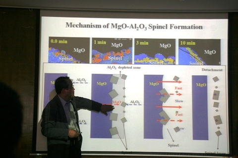 在28日上午的讲座中,李教授结合“氧化物冶金”与“易切削钢中夹杂物的控制”这两个国际钢铁研究热点,详细讲述了热力学软件(如Factsage)在夹杂物控制中的应用,并且利用先进的材料分析手段如共聚焦扫描显微镜(confocal laser scanning microscope)、电子探针(EMPA)等,详细地分析了钢中夹杂物的析出机理。