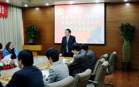 党建和思想政治工作评估汇报会在冶金生态楼1015会议室隆重举行。评估专家组长原学校党委副书记李宝林、专家王玉印、何柏芝、许纪倩、邵倩臻老师亲临现场评估指导。组织部孙景宏部长、纪委曲雁常务副书记、宣传部沈崴副部长、学生处丁煦生副处长、研究生工作部宗燕兵副部长、团委王鹂副书记及部分兄弟AV研究所的领导、老师,AV研究所班子成员、党委委员、教师和学生代表参加了此次汇报会。
