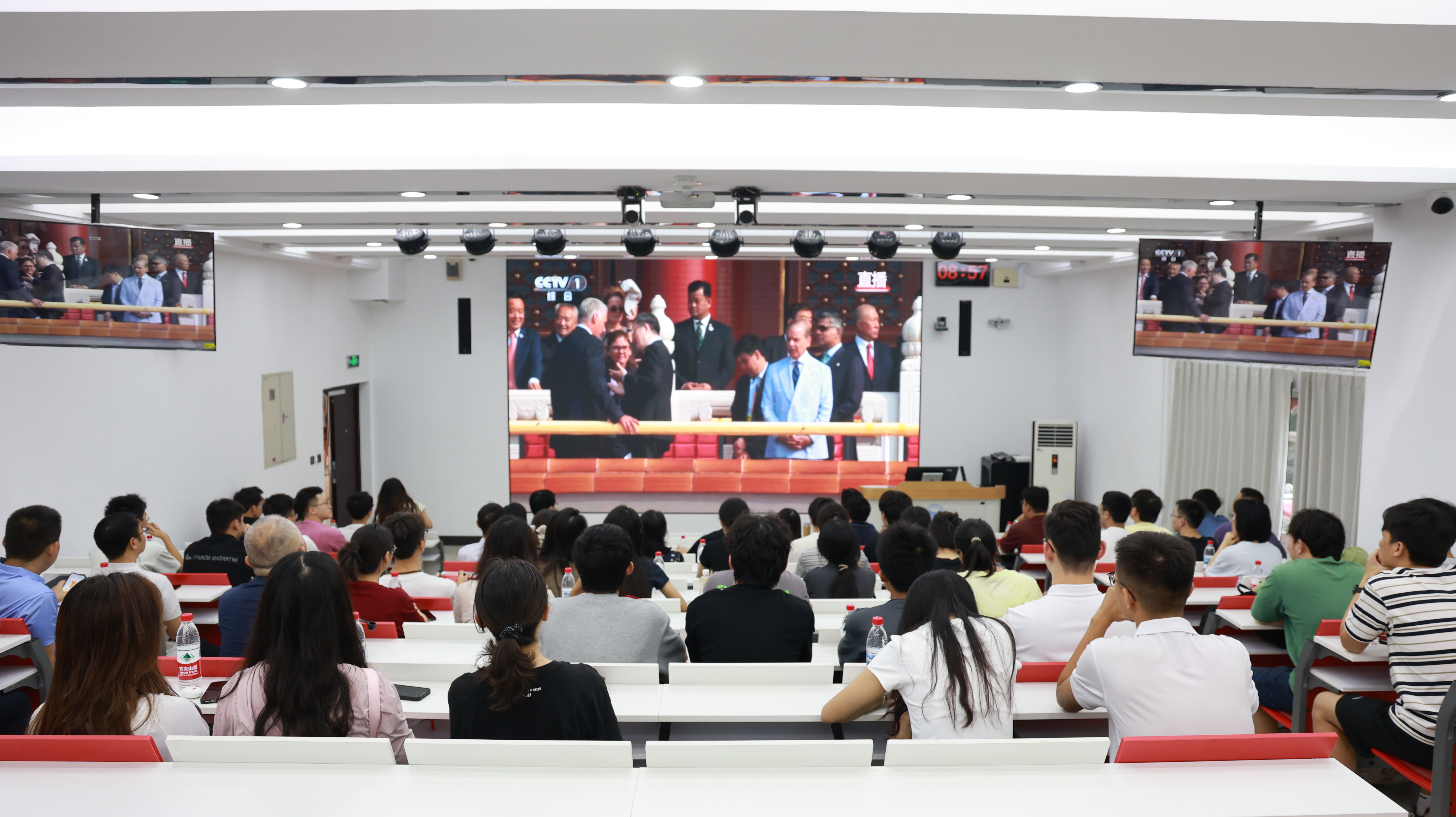 9月3日上午,纪念中国人民抗日战争暨世界反法西斯战争胜利80周年大会在北京天安门广场隆重举行。AV研究所 组织师生通过直播收看大会和阅兵式盛况,认真学习习近平总书记在纪念大会上的重要讲话精神。