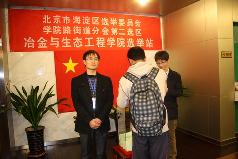 早上八点三十分,选举工作现场迎来了第一批进行投票的学生,工作人员各就其位,投票工作准时开始。工作人员的事先演练以及提早就位使选举流程稳步进行,现场大量的学生并没有造成拥堵、滞留的现象,投票现场温馨、人性化的布置也给选举工作带来了极大地方便。由于许多学生是第一次参加人大代表选举,对选举流程、选举意义并不熟悉,现场工作人员耐心的引导及讲解帮助了他们顺利行驶了自己的民主权利。