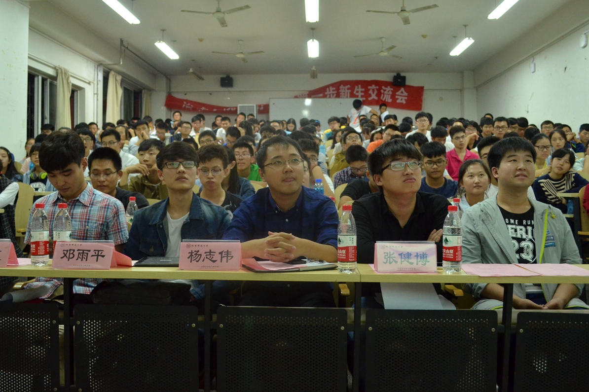 13级本科同学孙胜东首先向大家介绍了学业发展的相关内容,幽默风趣的PPT展示向同学们描绘了大学生的课业安排以及日常学习生活,紧接着给新生分享了他学习的经验,要有最初的梦想,良好的自制力和学习习惯,努力管理好自己的学习与生活。”他还讲述了参加科技竞赛的收获即“团队合作,创新意识,个人技能,学科交叉”。“求知若渴,大智若愚”是他对16级本科新生们的寄语。