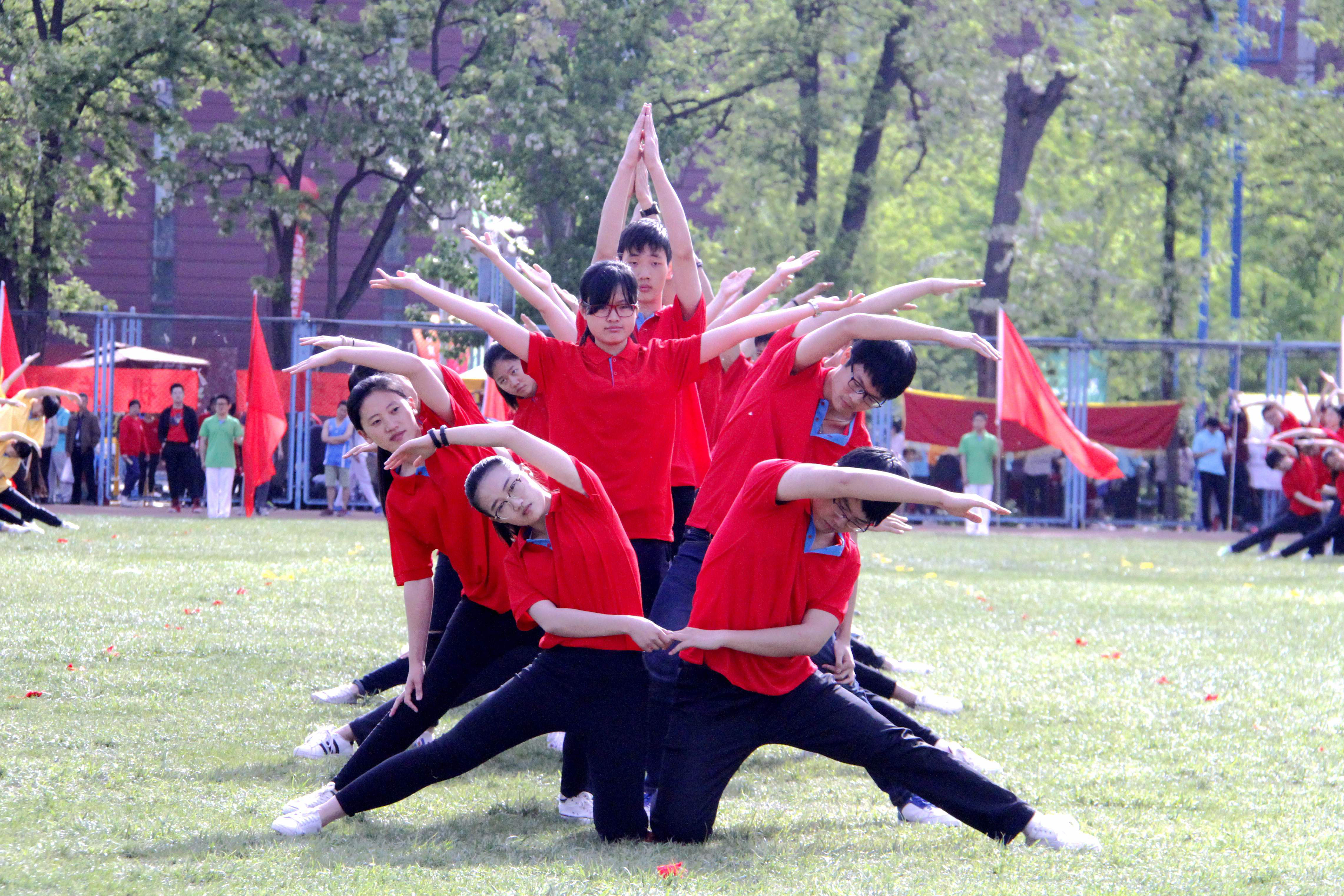 的方阵成员不辞辛苦,利用早操和课余时间积极进行排演。每次早操,他们不厌其烦的一次又一次的练习体操动作,在早晨和煦的阳光下舒展着自己的身躯;在一天课业完成之后,他们相约在晚上进行集体训练,力求将自己最好的一面展现给全校的观众。随着训练的深入,他们的动作从生疏到熟练;他们的身姿生硬从到柔美,日臻优美,彰显着自身的青春活力。