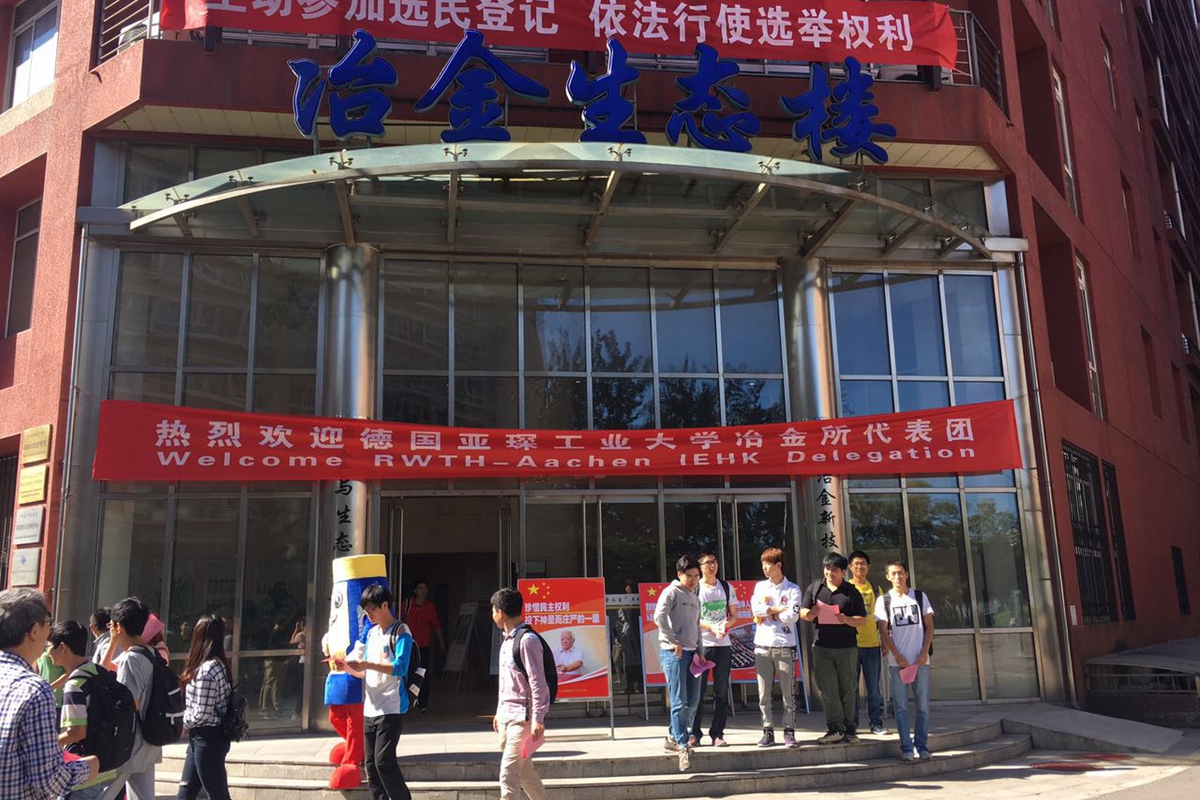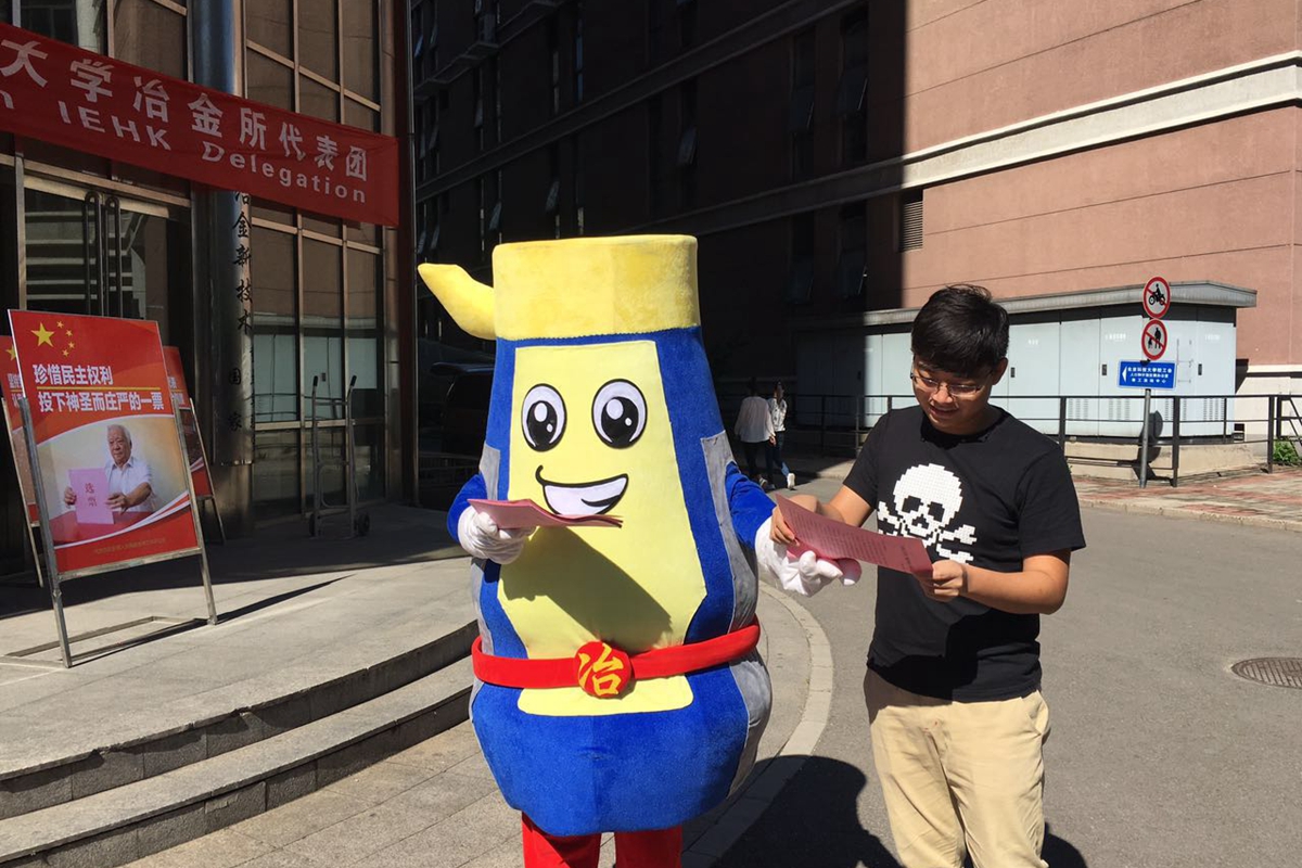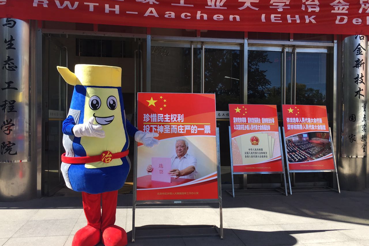 在冶金生态楼门前设置了宣传站点,AV研究所机关党支部党员教师对广大师生进行了人大代表换届选举知识的普及工作。