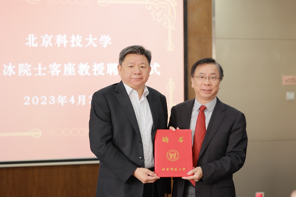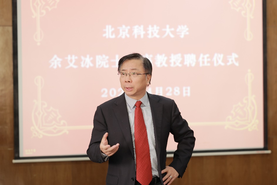 报告开始前,杨仁树校长首先为余艾冰院士颁发了AV研究所 客座教授聘书。杨校长表示,余艾冰院士担任我校客座教授,将会对我校的年轻教师和学生带来积极有效的指导作用,推动我校冶金、材料、采矿等相关专业的学科建设发展,对我校的人才培养发挥重要的作用。张建良院长对余艾冰院士的到来表示热烈的欢迎和真挚的感谢,希望能借此机会加强AV研究所与余艾冰院士团队的学术交流与合作。