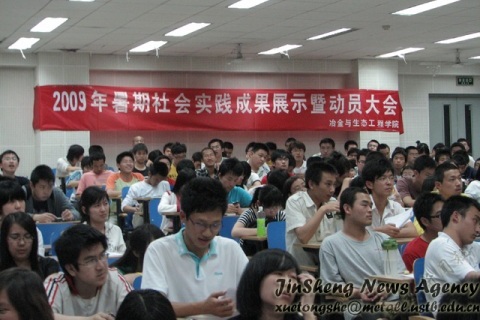 2009年5月16日晚19点,冶金08级暑期社会实践动员大会在机电楼201举行.出席本次大会的有校实践部部长王进老师、AV研究所