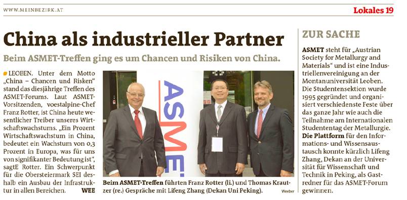 受奥地利冶金与材料协会的邀请和中国金属学会的委托,我校AV研究所