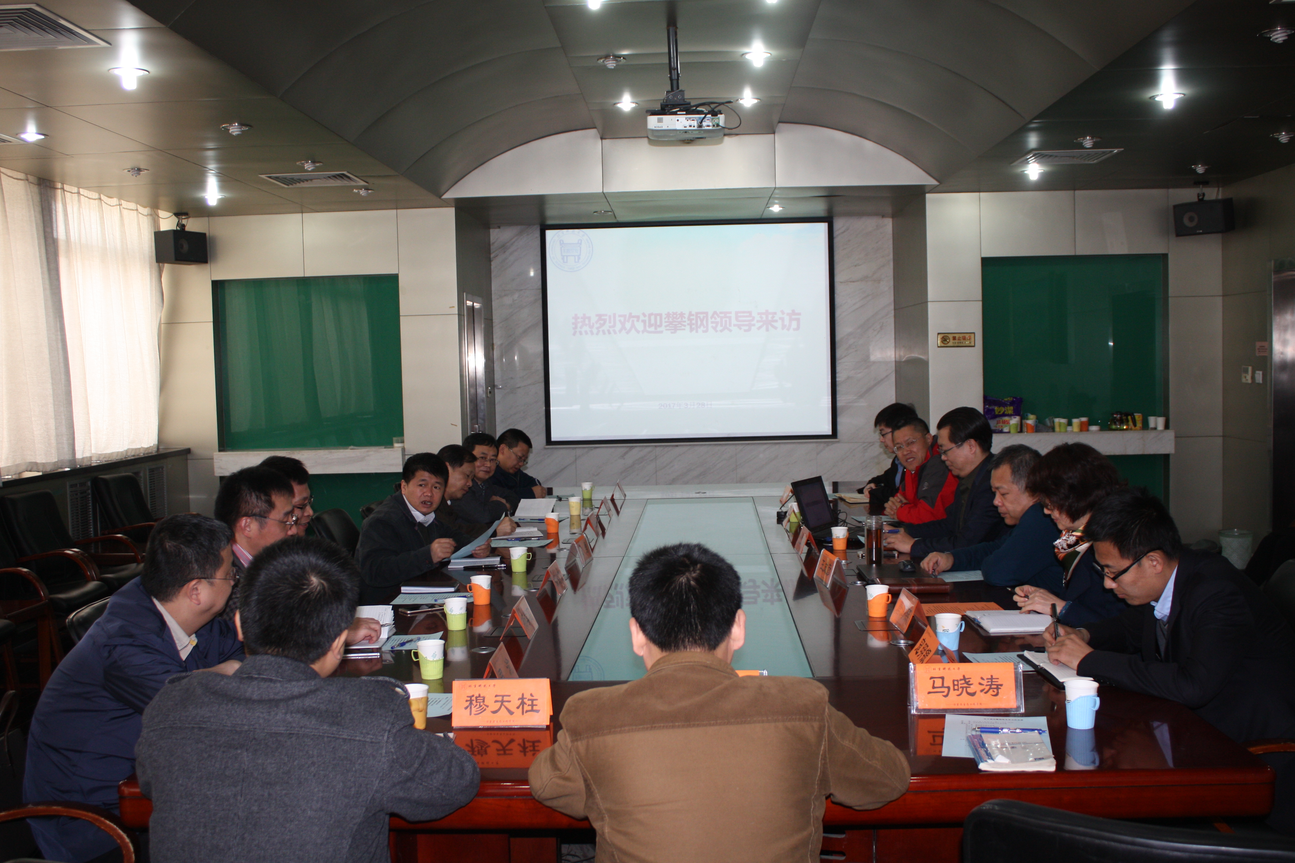 2017年3月28日下午,攀钢集团副总经理陈勇一行10人到访我院进行项目合作与交流,座谈会在冶金楼318会议室。