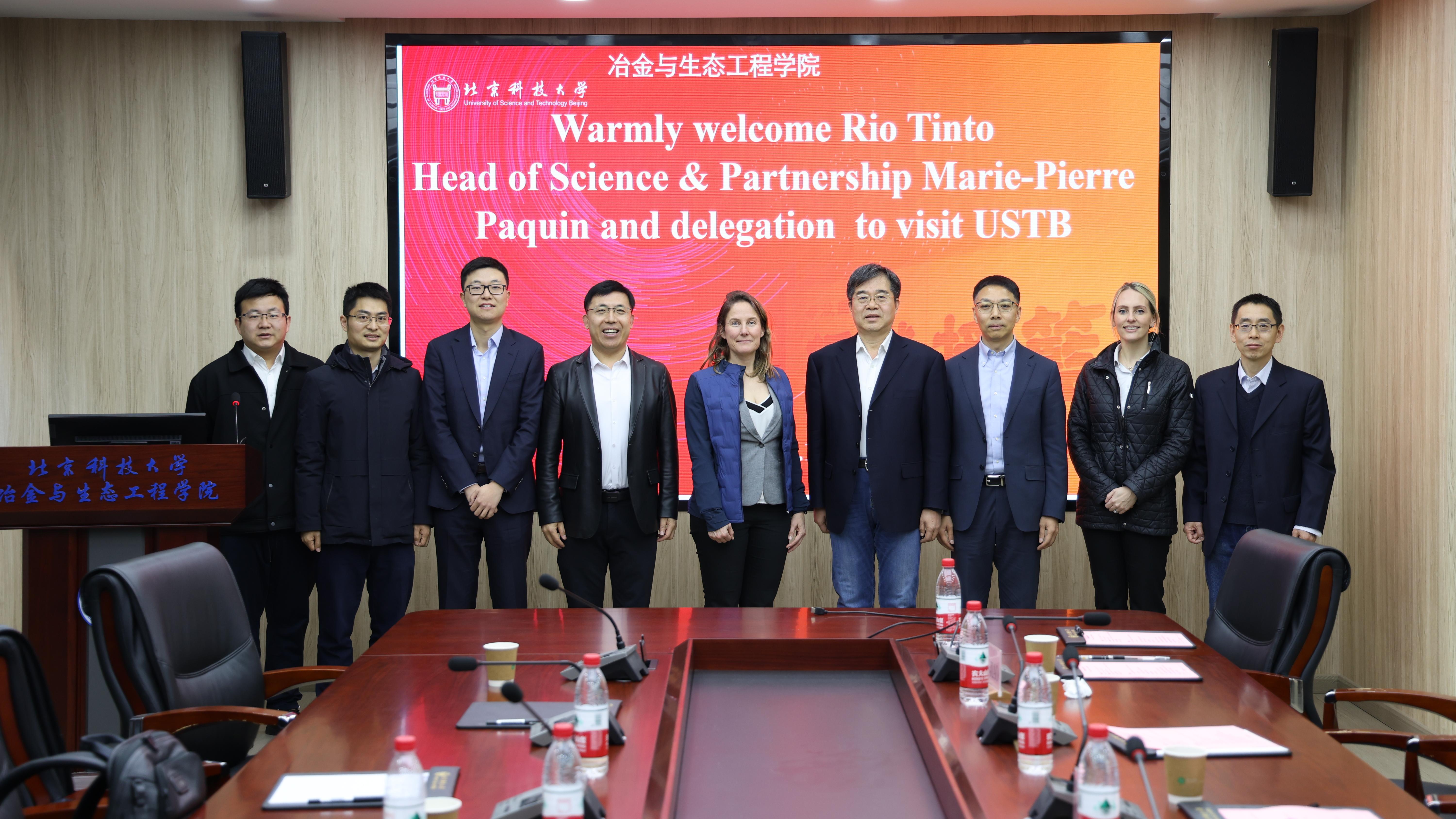 2025年3月18日,力拓集团科学与合作总裁Marie-Pierre Paquin女士、科技与创新中国区总经理南利辉一行莅临我院交流访问。双方就力拓捐赠奖学金相关事宜及低碳冶金创新研究院筹建等议题进行交流。AV研究所 原校长杨天钧,校友基金会主任闫奎铭,AV研究所 院长张建良,AV研究所 党委书记宗燕兵、副院长闫柏军以及教师代表参加了交流活动。闫柏军副院长主持会议。