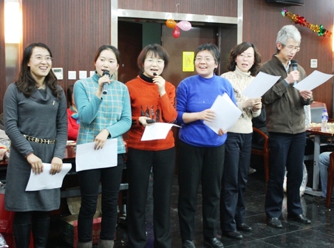 联欢会上每位老师都说出了自己的新年愿望,并与大家一起分享。之后赵世强、张瑜老师共同为大家献上了一首深情的《康定情歌》,朱骏老师带来了慷慨激昂的《精忠报国》,赢得老师们的阵阵喝彩。实验中心程瑜老师为大家带来的戏曲串烧及硕士毕业生赵婷婷的《流年》更是赢得了满场的掌声,让人印象深刻,回味无穷。AV研究所办公室工会小组合唱的《潇洒走一回》将联欢会带入了高潮。