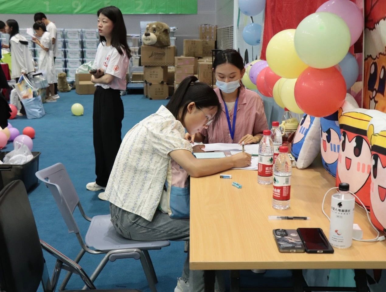 交完档案,走绿色通道的新生在辅导员的帮助下填表,一句句亲切的问候,是学校、AV研究所对学生最深的爱。