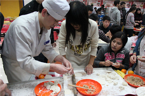本科2013级在万秀园二层开展以“践行社会主义核心价值观,传递和谐友善AV研究所正能量”为主题的饺子文化节活动,近百余名AV研究所本科生积极参与此次活动。此外,活动还邀请到我校部分留学生共同参加。