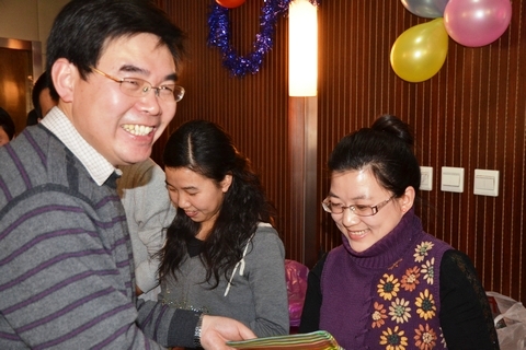 在随后的联欢篇里,各位同学尽情展示了自己的文艺风采。黄兴博士声情并茂的张信哲情歌,张英荣同学情意绵绵的《爱似水仙》以及李昂同学带来的经典笛子曲《帕米尔的草原》都让现场同学掌声雷动。老师们也不甘示弱,韩汝玢教授带来了自己最爱的“十六步”舞蹈,并现场进行教学,潜伟教授的粤语经典《海阔天空》引来了大家的集体合唱,陈坤龙老师的拿手歌曲《飞天》更是引爆全场,各路能人纷纷献艺,现场一片欢声笑语。节目中间还穿插各种小游戏及抽奖活动,组织者还精心准备了各种小礼品,开心的同时更能有所收获。